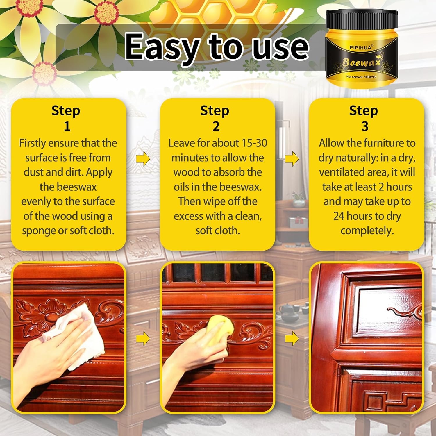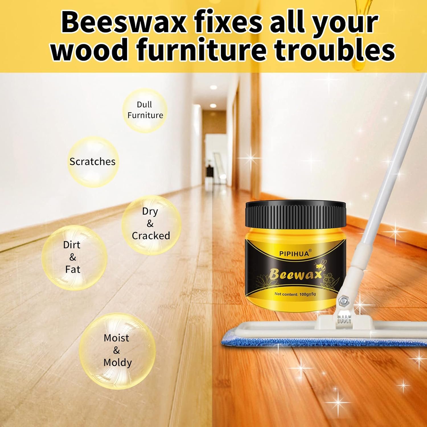 Product details of Mintiml Beewax Wood Polish Polisher Polishing Compound Wax Floor Seasoning Furtniture Wrap Care Magic Repair Traditional All-Purpose Wood 80gm