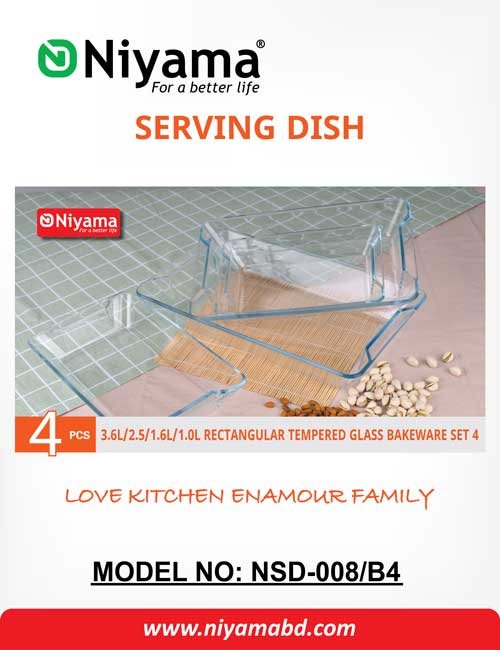Upgrade your kitchen essentials with the Niyama NSD-008/B4 Rectangular Tempered Glass Bakeware Set. This premium 4-piece set combines durability, versatility, and style, perfect for baking, serving, and storing meals effortlessly.