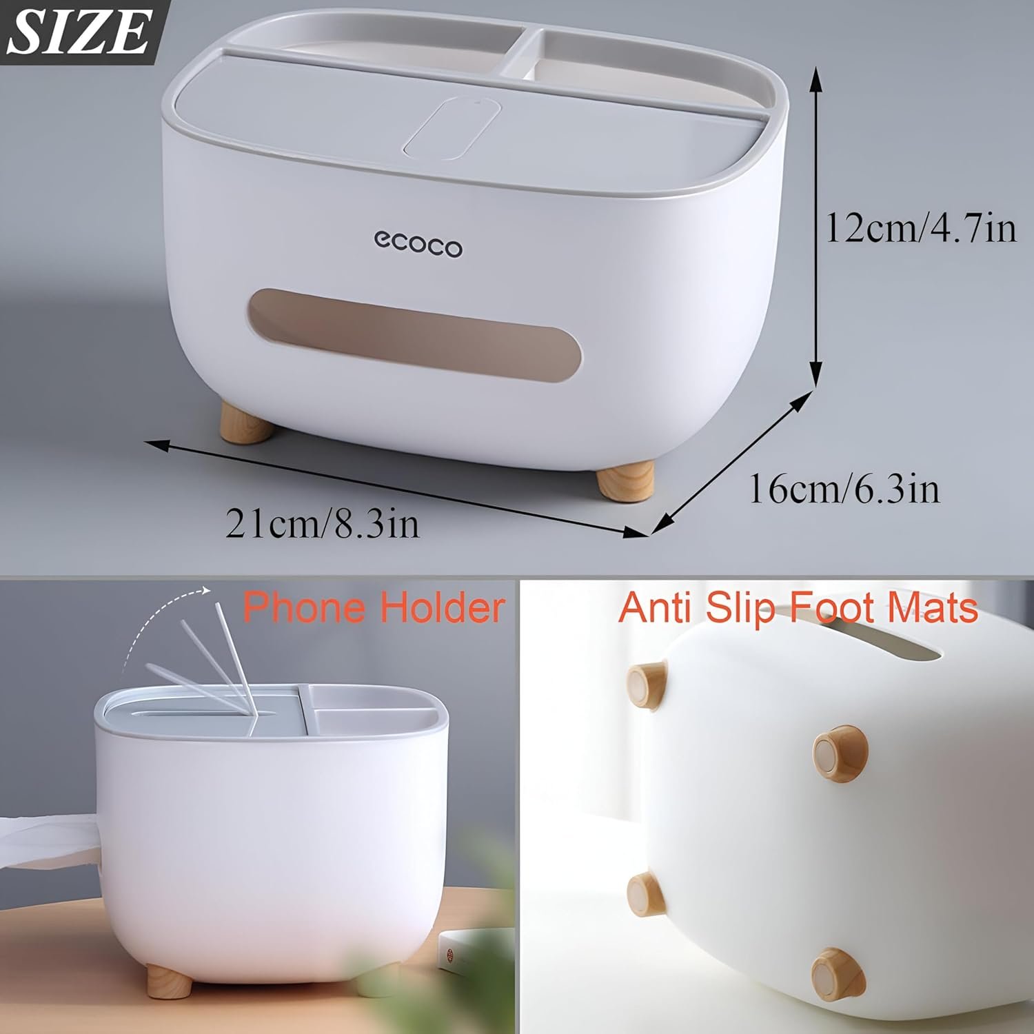 [মাল্টি-ফাংশন বক্স] স্টোরেজ বক্স সহ টিস্যু বক্স হোল্ডার সাধারণ বর্গাকার টিস্যু বক্সের বিরক্তিকর চেহারা লুকাতে সাহায্য করে। এটি কেবল কাগজের তোয়ালে সংরক্ষণ করতে পারে না, এটি বাড়িতে ছোট ছোট জিনিসপত্রও সংরক্ষণ করতে পারে, যেমন কলম/পেন্সিল এবং স্মার্টফোন।